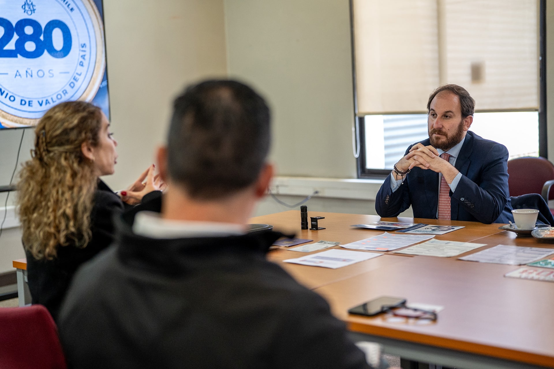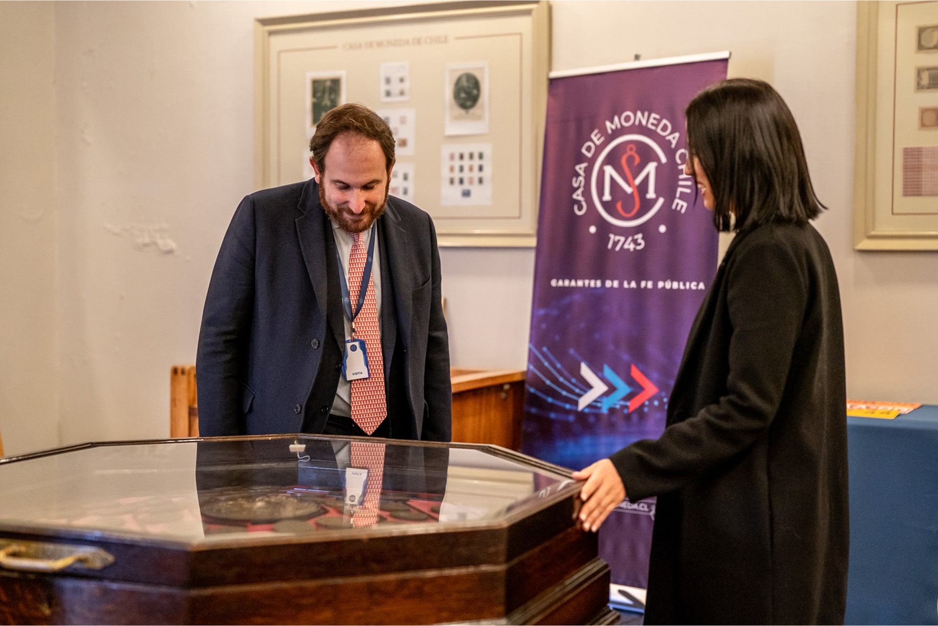 Luego de la reunión, el alcalde de Huechuraba tuvo la oportunidad de conocer las áreas productivas de placas patentes, medallas y cuños, mediante un recorrido guiado por los líderes de las zonas productivas.
