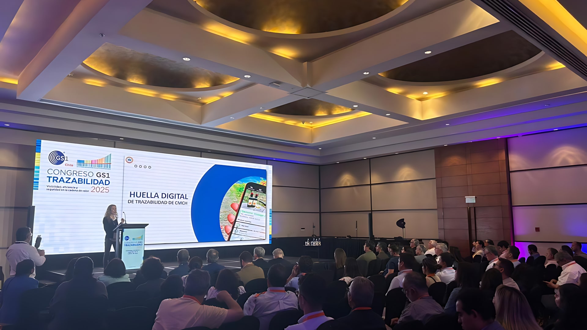 Durante la jornada, la gerenta comercial de Casa de Moneda de Chile, Angela Movillo, compartió la experiencia de la empresa en trazabilidad y transformación digital, destacando los avances alcanzados en la creación de la huella digital como método que combina medidas físicas y digitales.