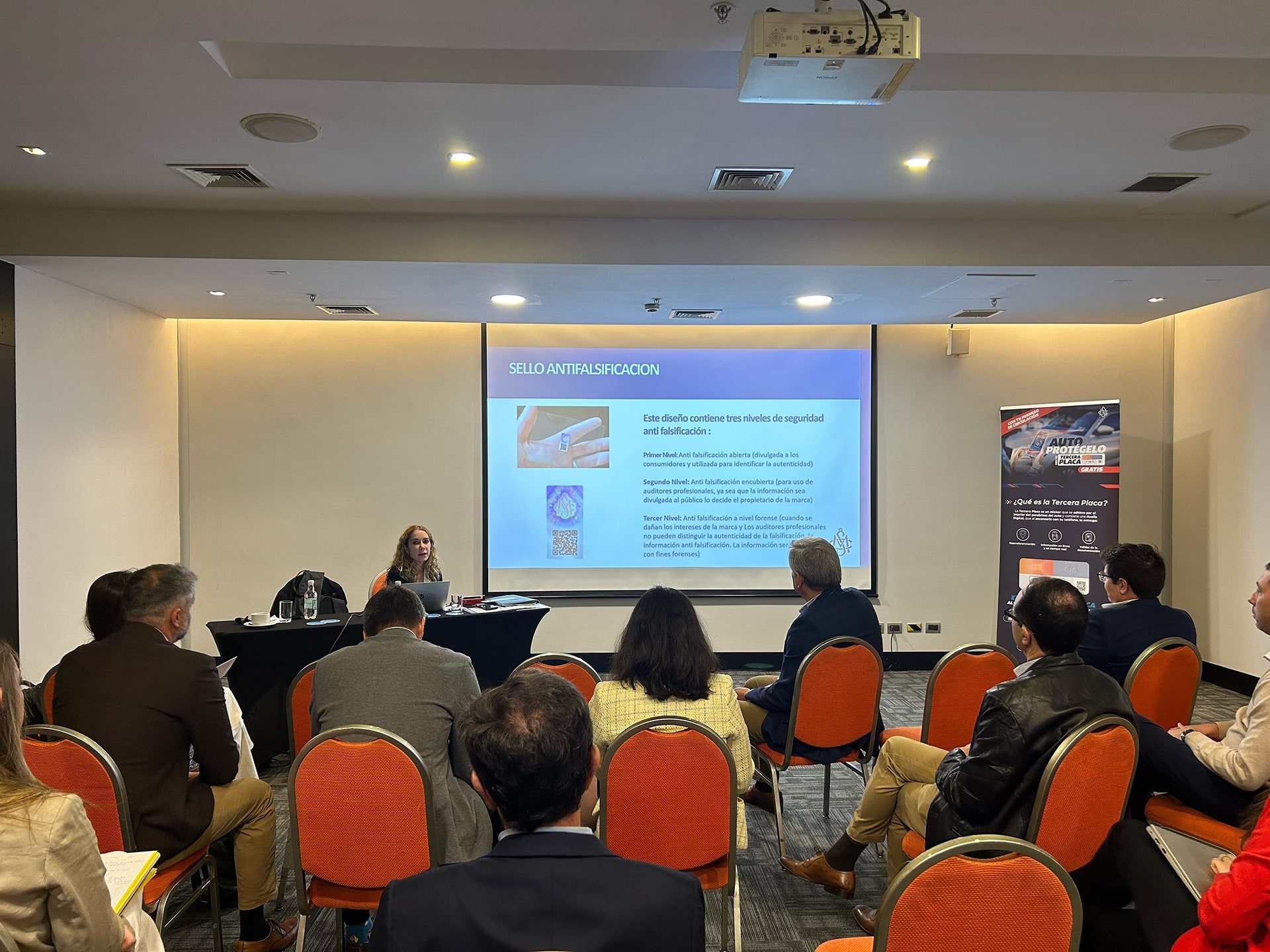 Durante la sesión, Casa de Moneda de Chile expuso sobre una tecnología de origen suizo que permite la autenticación única e infalsificable de productos a través de una huella digital. Esta solución no sólo ofrece un mecanismo efectivo contra el comercio ilícito, sino que también habilita una nueva forma de interacción entre las empresas y los consumidores.