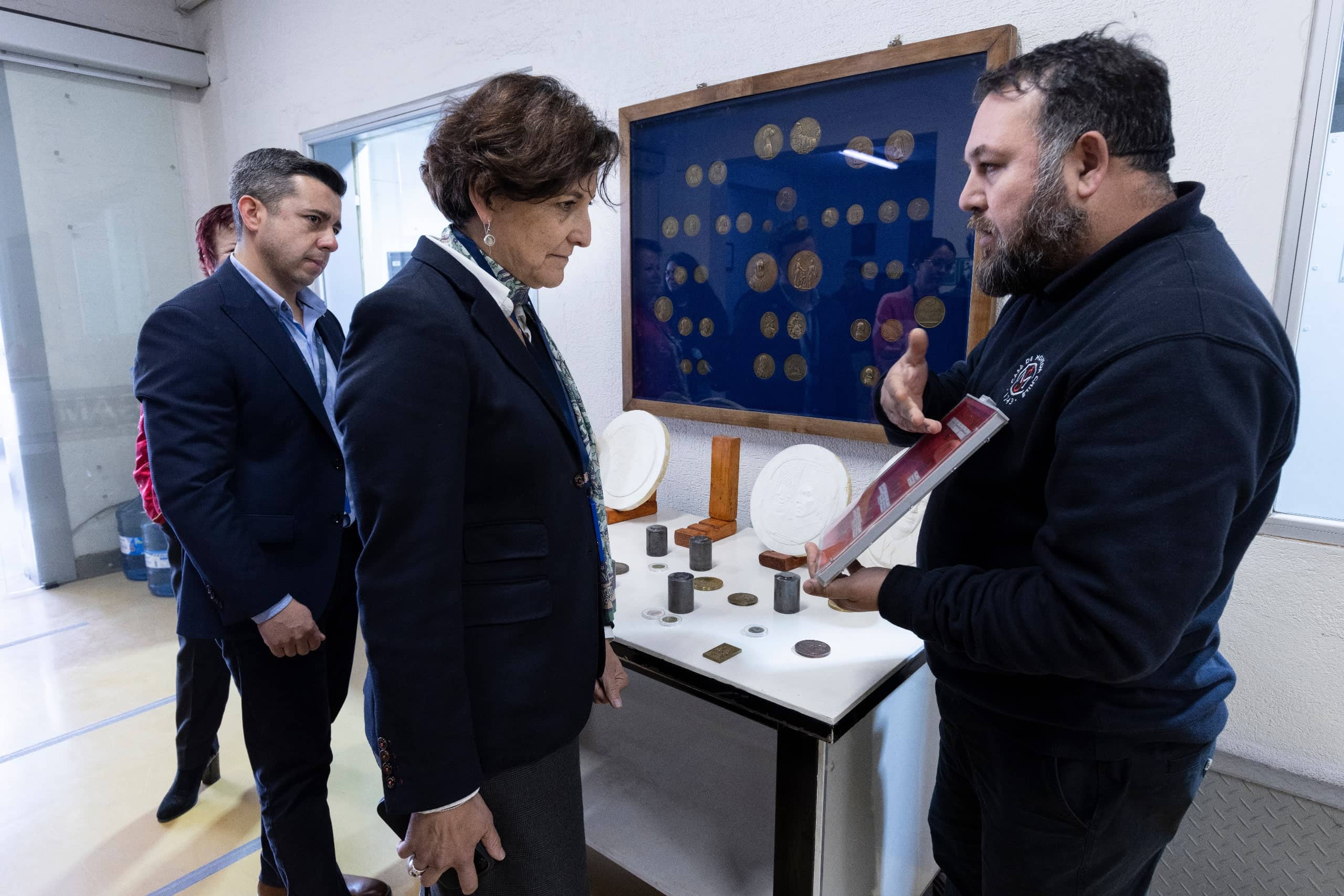 Luego de la reunión, la secretaria de Estado recorrió la planta de Acuñación Monetaria y Otros Impresos, en donde compartió con los trabajadores y las trabajadoras de CMCH, quienes le explicaron los detalles de su trabajo y los productos que fabrican.