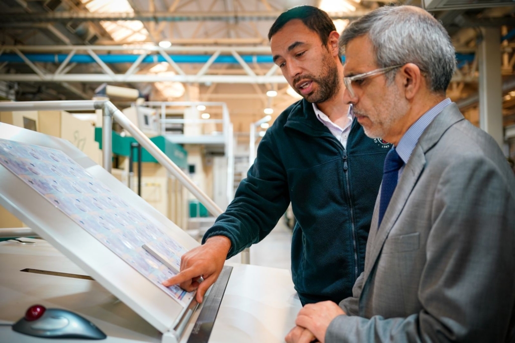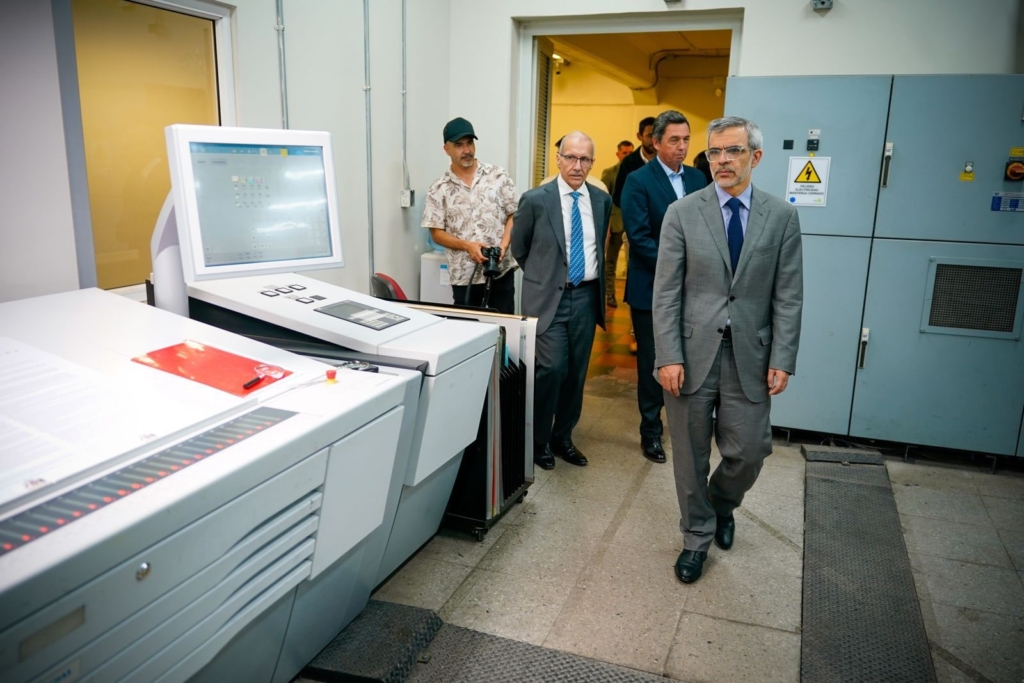 Durante su visita, el Ministro Cordero fue recibido por Sergio Henríquez, presidente del directorio, Carlos Tolosa, gerente general, y Ángela Movillo, gerente comercial. Posteriormente, recorrió nuestras áreas productivas, donde pudo constatar de primera mano las capacidades de Casa de Moneda.